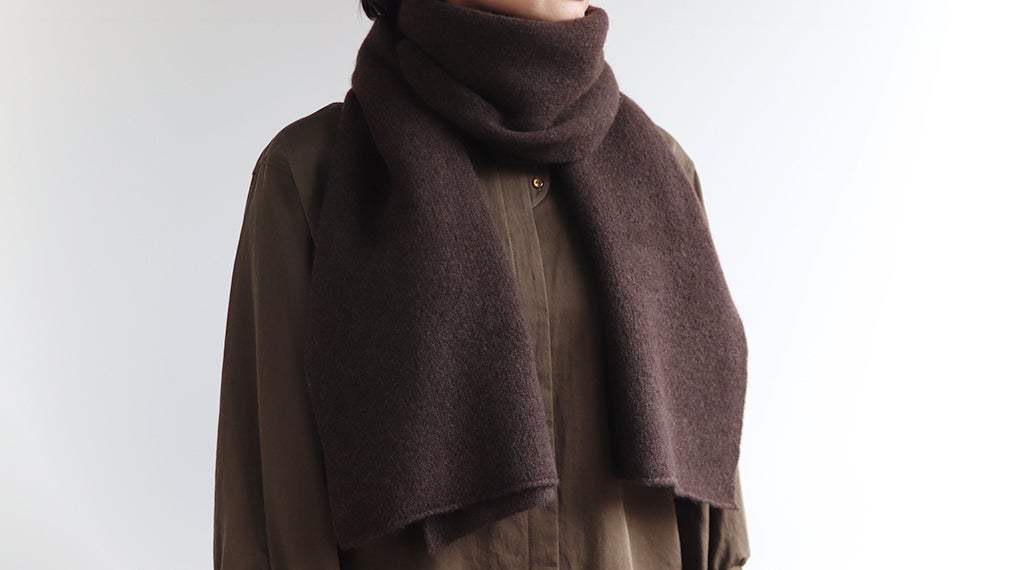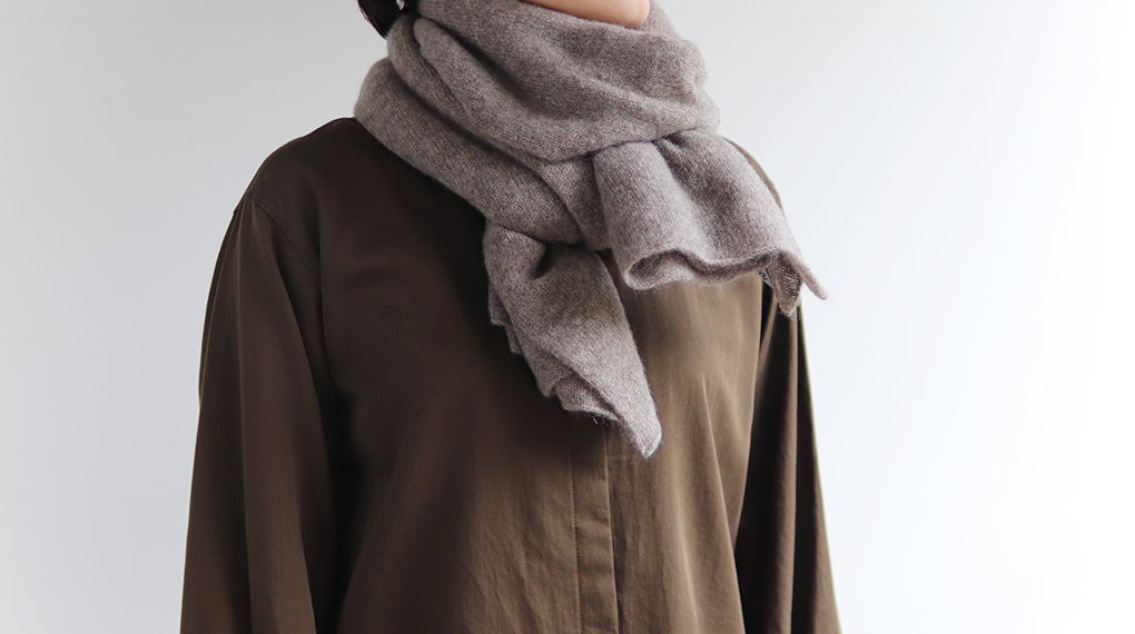 素材には、カシミヤ5%・ウール70%・ナイロン25%の糸を使用し、やわらかさと強度を出しています。1サイズ、カラーは3色ご用意しました。