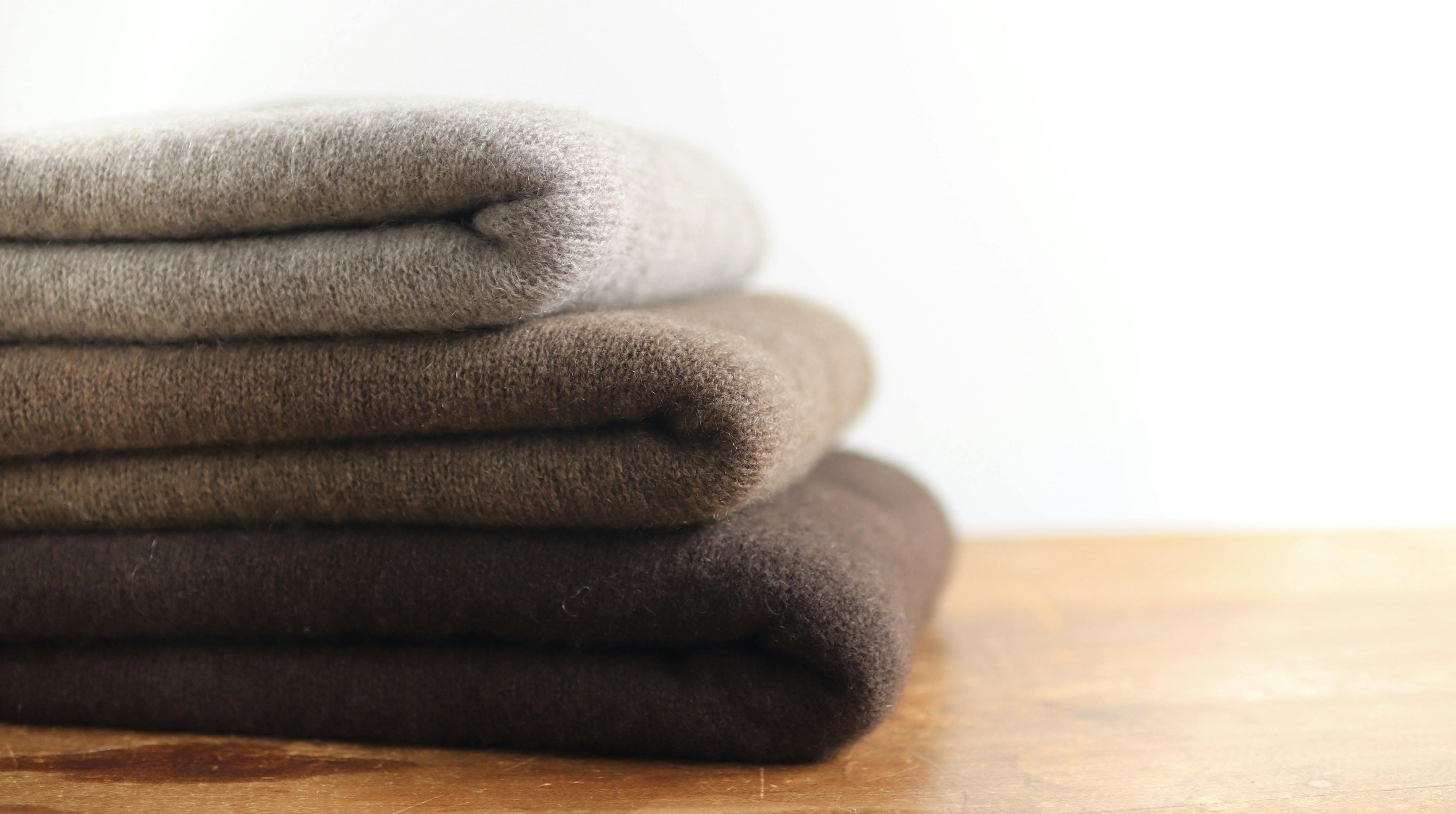 上質なホワイトカシミヤ(100%)を使用しています。カラーは、今回のクラウドファンディング限定色「ブルー」を含む、合計10色をご用意しました。