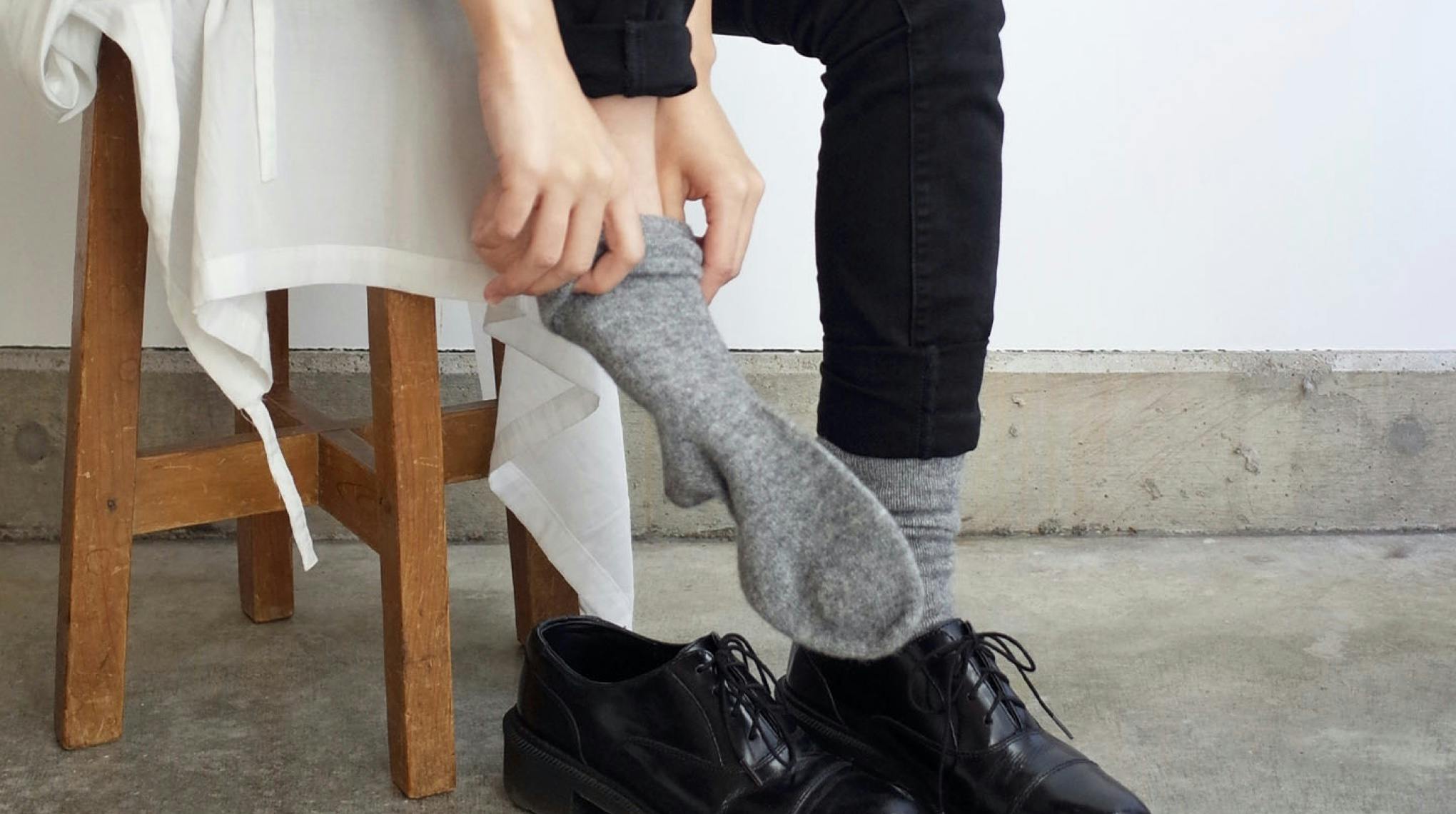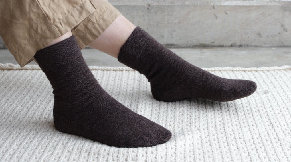 以前から「肌にやさしくあたたかい靴下がほしい」という声をいただくことが多く、ニットの靴下を作りたいと考えていました。やわらかく、締め付けすぎず、重ね履きもできて、靴が履けるように厚すぎないなど、1つ1つ丁寧に考えて作り上げました。