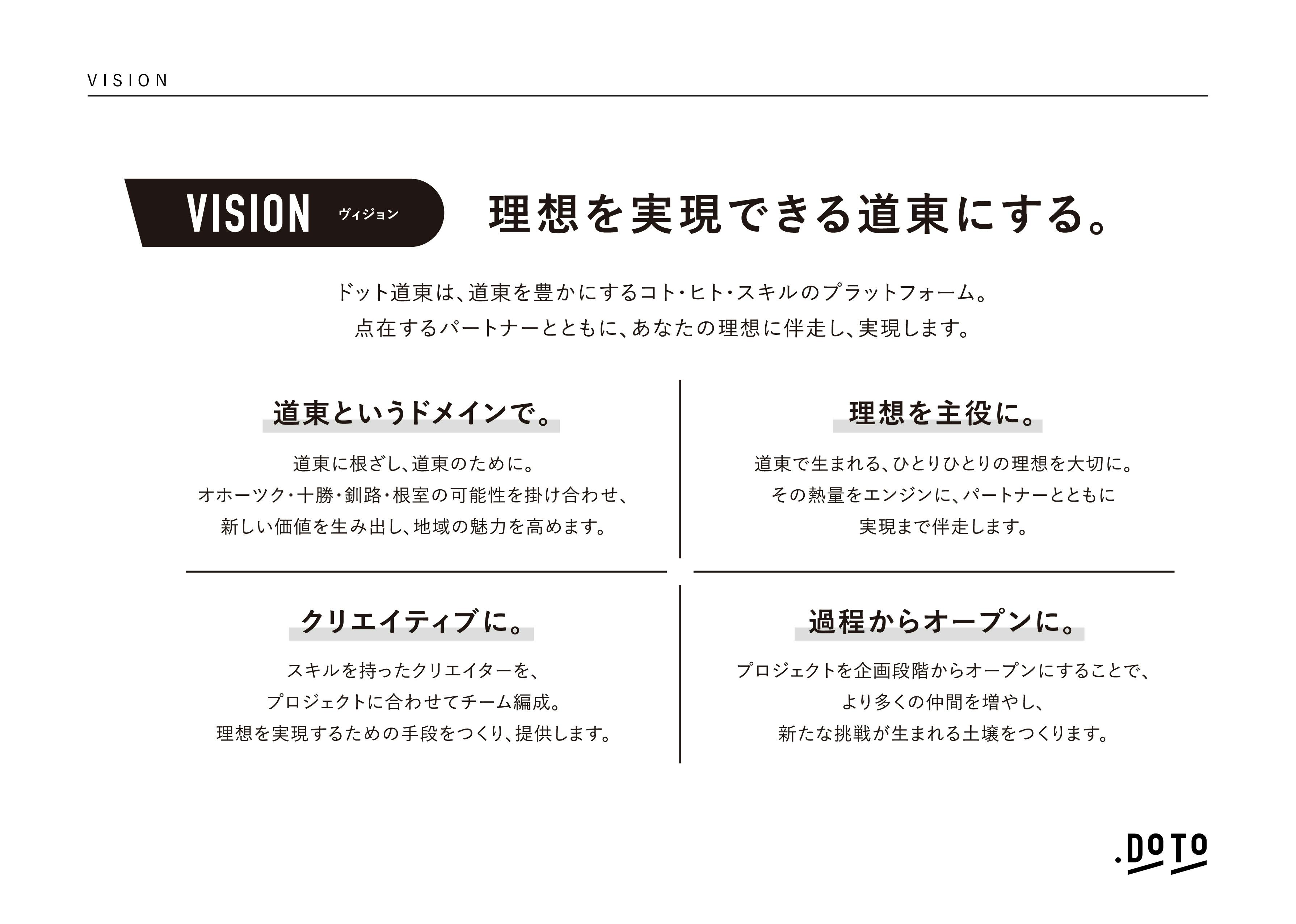 そして道東のアンオフィシャルガイドブック「.doto」発行日からちょうど1年のタイミングで、「.doto」第二弾として、今回は1000人の理想を集めた道東のアンオフィシャルビジョンブックを作るプロジェクトを立ち上げます。
