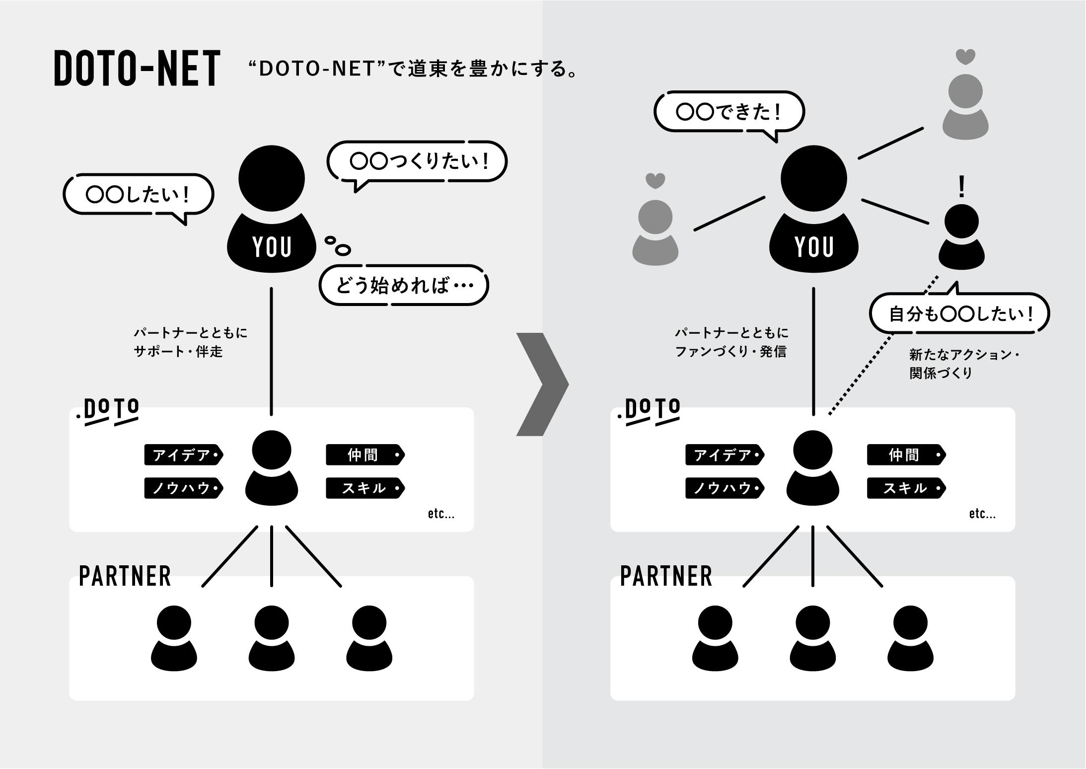 自分たちの理想を実現するため、また、これから理想を実現しようとする人の助けとなり背中を押すことができる、このネットワークを「DOTO-NET」と呼ぶことにしました。
