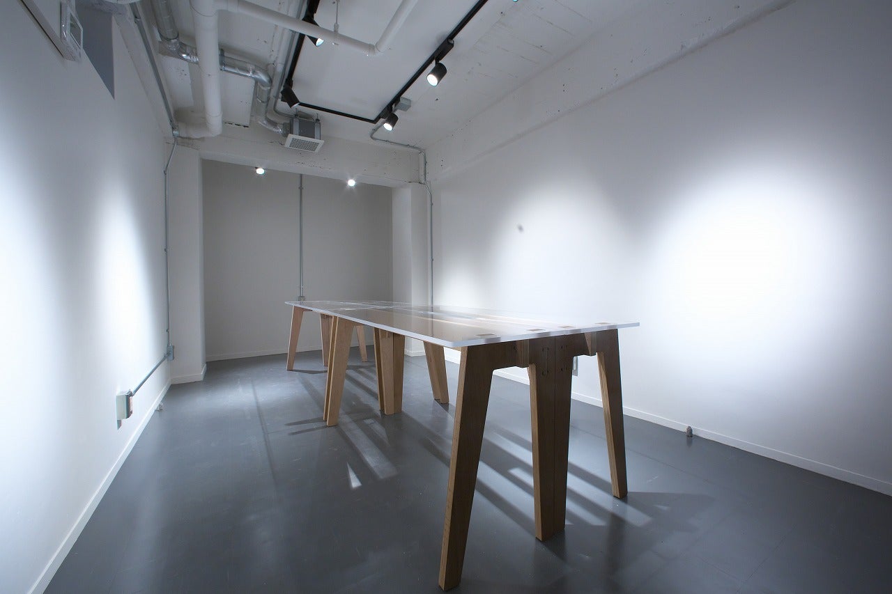 工事現場で大工さんが使っている作業台をモチーフにしたテーブル。イベントやショップ什器、ダイニングテーブルとしてもお使いいただけます。ラワン合板製とアクリル(透明)のものがあり、天板や脚を異種素材で組み合わせることができます。