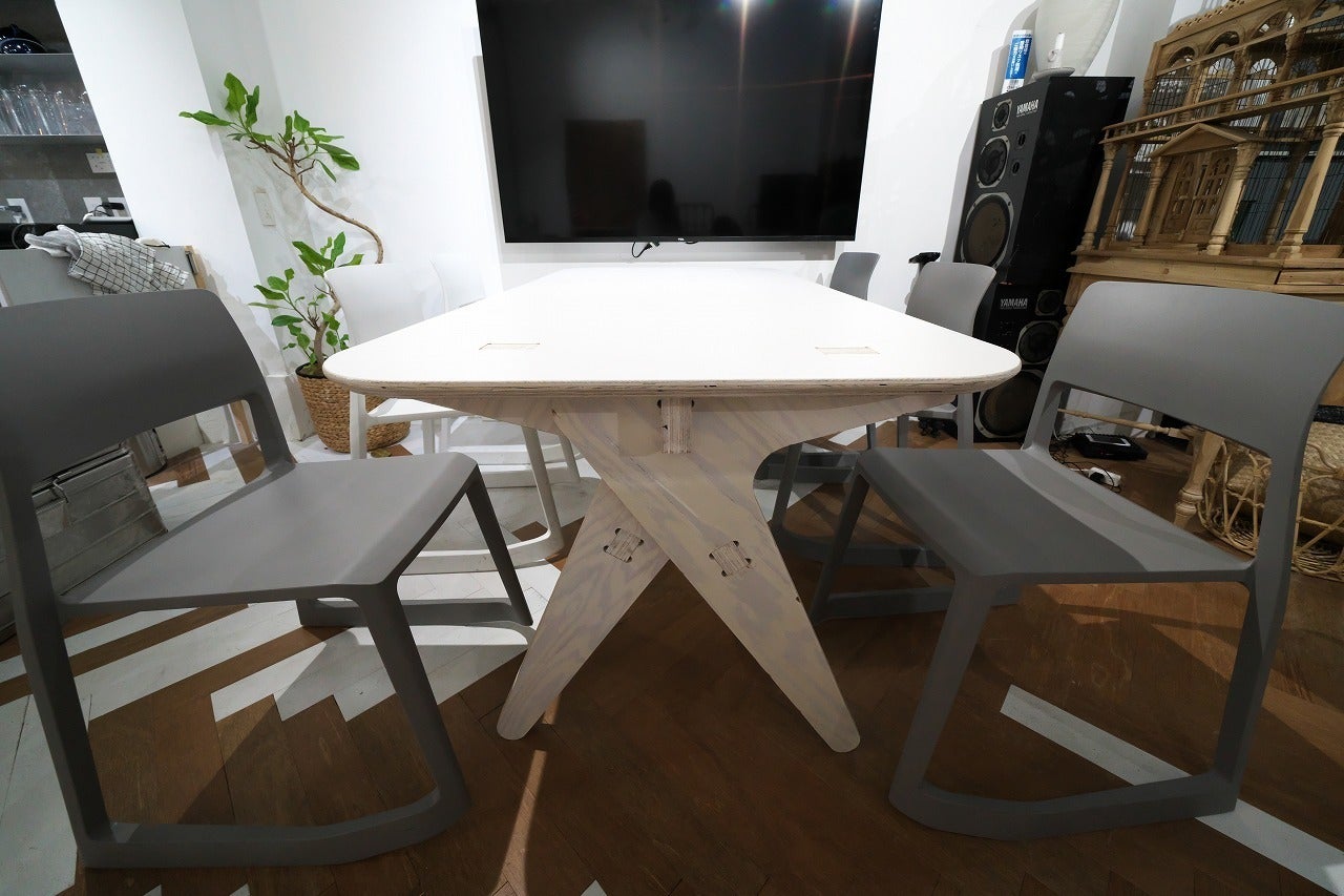 ブーメランの形状をモチーフとした脚が特徴的なデザインのテーブル。ダイニングだけでなく、ミーティングテーブルとしてもお使いいただけます。