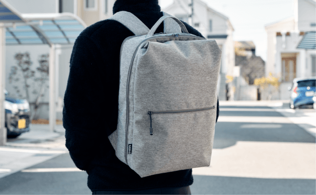 多機能な中身とは対照的に、シンプルな見た目が特徴です。KABAGの顔となるデニム風生地は、カジュアルな服装からビジネスシーンまで対応可能。