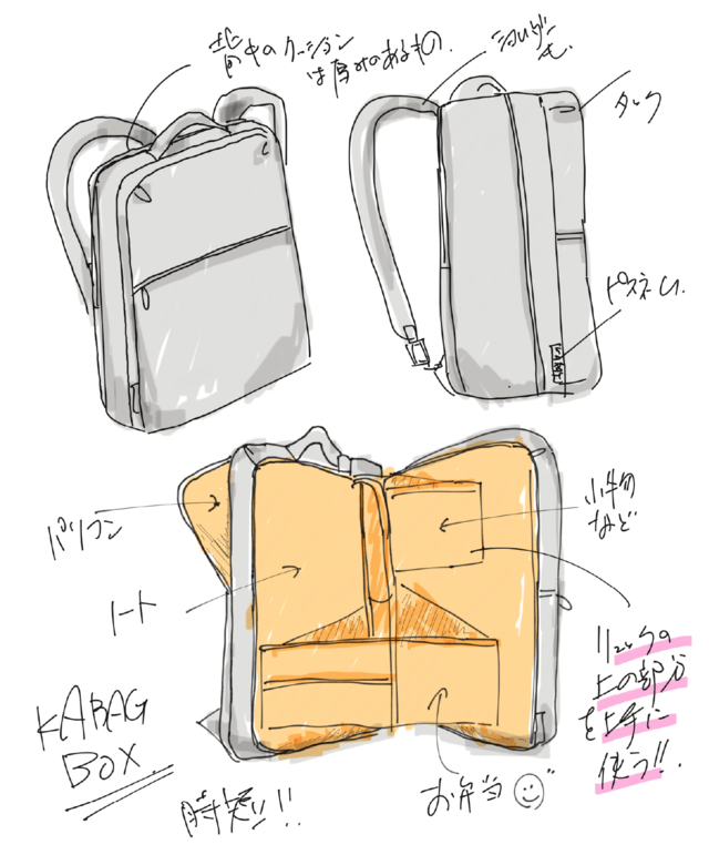 「KABAG ボックス」は、リュックの中のモノをすぐに見つけられる「時短リュック」です。