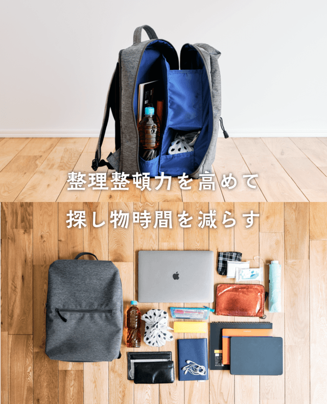 ①1年で150時間もあると言われる探し物時間を減らす。整理整頓力が高まる「時短リュック」