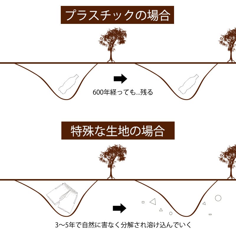 こちらの素材はわずか3~5年で100%生分解され、やがて自然界にかえります。