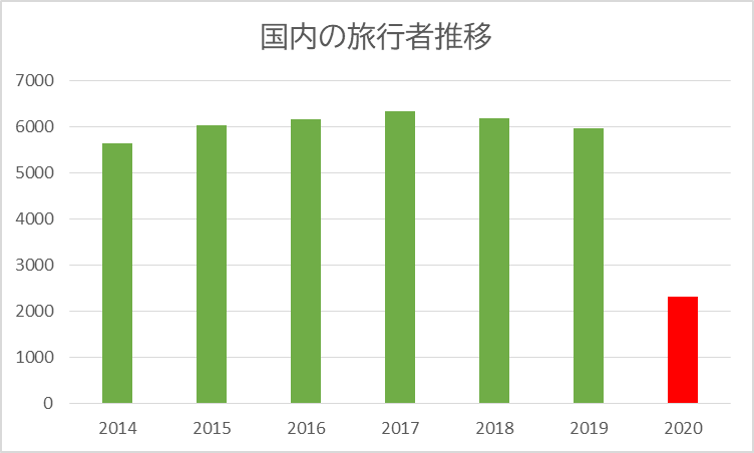 2020年の旅行者は前年と比較し6割も落ち込みました。