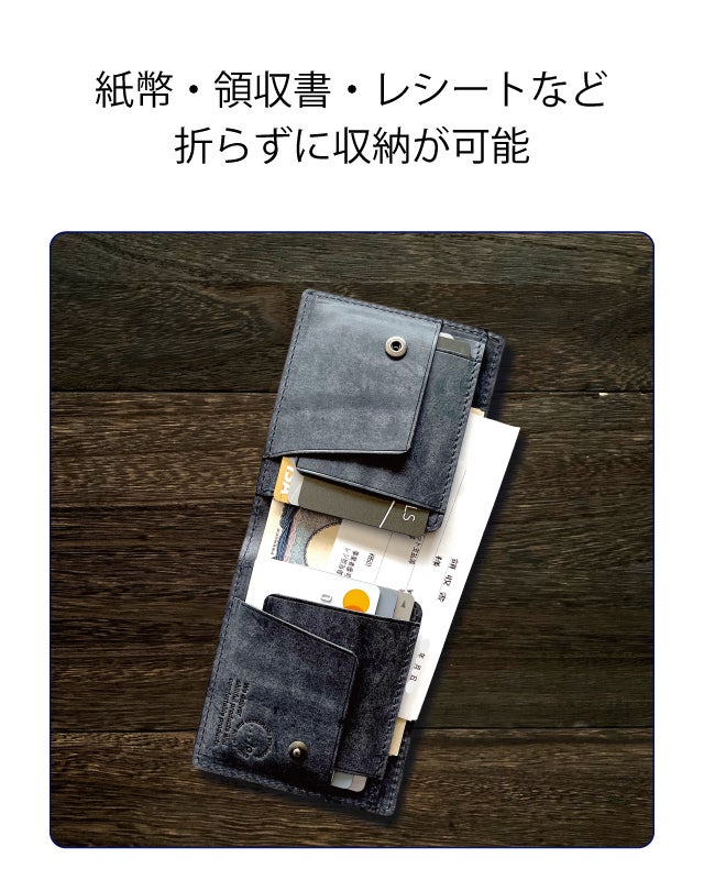 紙幣や領収書、レシートなどを折らずに収納が可能。紙幣を直接押し出せる構造のため、取り出しがスムーズ。