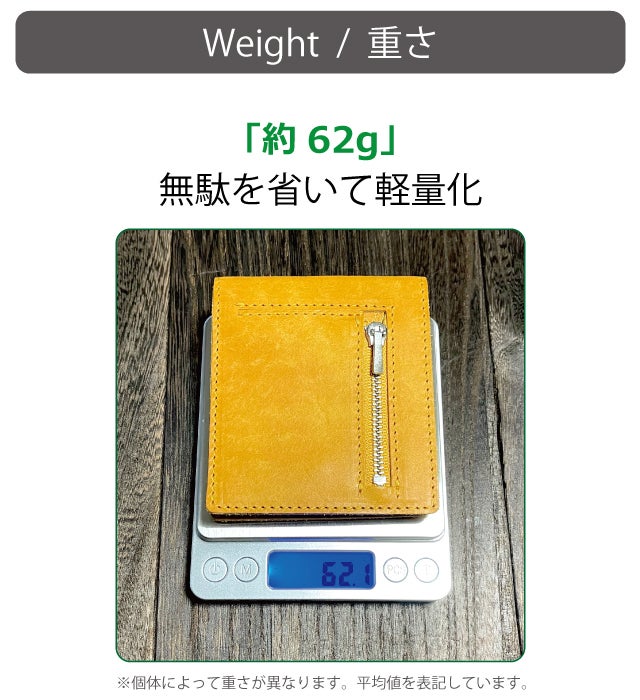 カードの枚数によってカードスペースが可動し、常にホールドする構造(特許庁意匠登録済・第1676247号)を備えながらも、重さはわずか約62g。