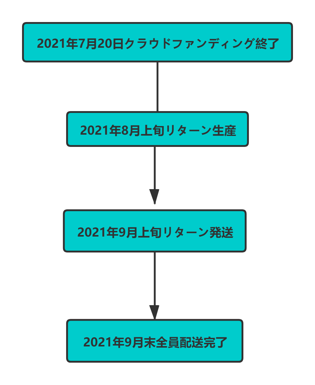 ◯ 商品引渡しまたは役務提供の時期:各プロジェクトが募集期間内に成立した場合のみ、支援金の決済が行われ、約定されたリターンを得る権利が発生します。なお、リターン毎の発送(履行)時期は各プロジェクトの記載・連絡に準じます。諸般の事情により遅延・遅配が生じる場合は、プロジェクトオーナーより記載・連絡されるものとします。