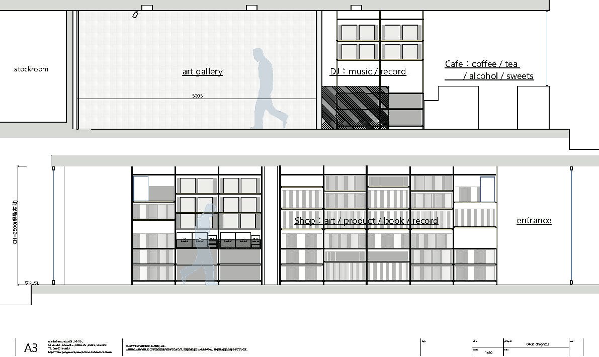 写真をご覧ください。この30坪のスペースに、国内外から様々なアーティストの展覧会を開催するアートギャラリー 、アートブックやZINEなどが揃うブックストア、コーヒーやビールが楽しめるカフェカウンター、レコードショップ、DJがアナログでレコードをプレイできるDJブースなどを設置予定です。