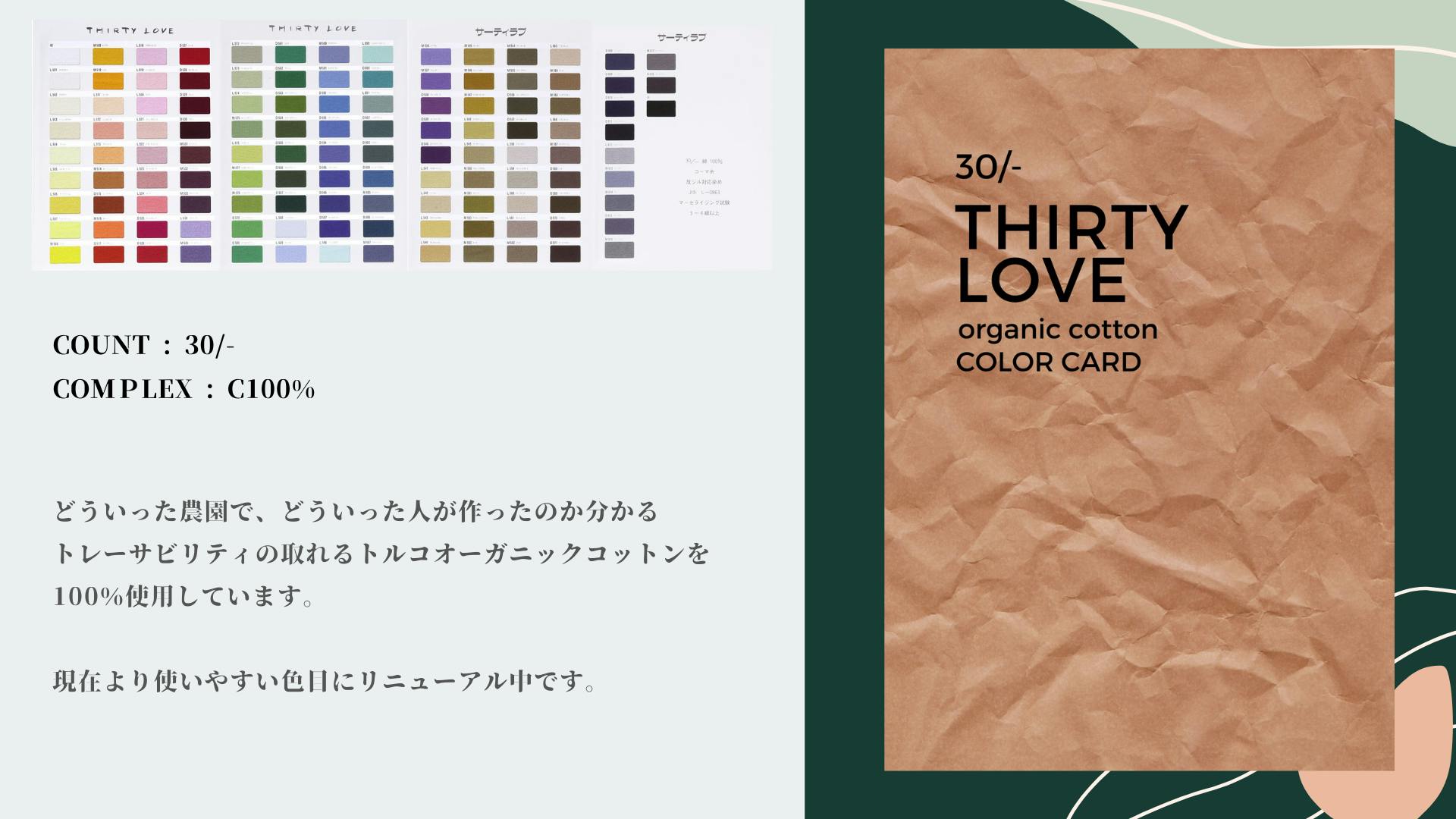 オーガニックコットン100%を使用した糸です。サスティナブルが問われる現代において、このコットンはトルコオーガニック綿を使用しており、どういった農場でどういった紡績工場でどういった環境で作られたかが特定できるTRACEABLEなコットンです。