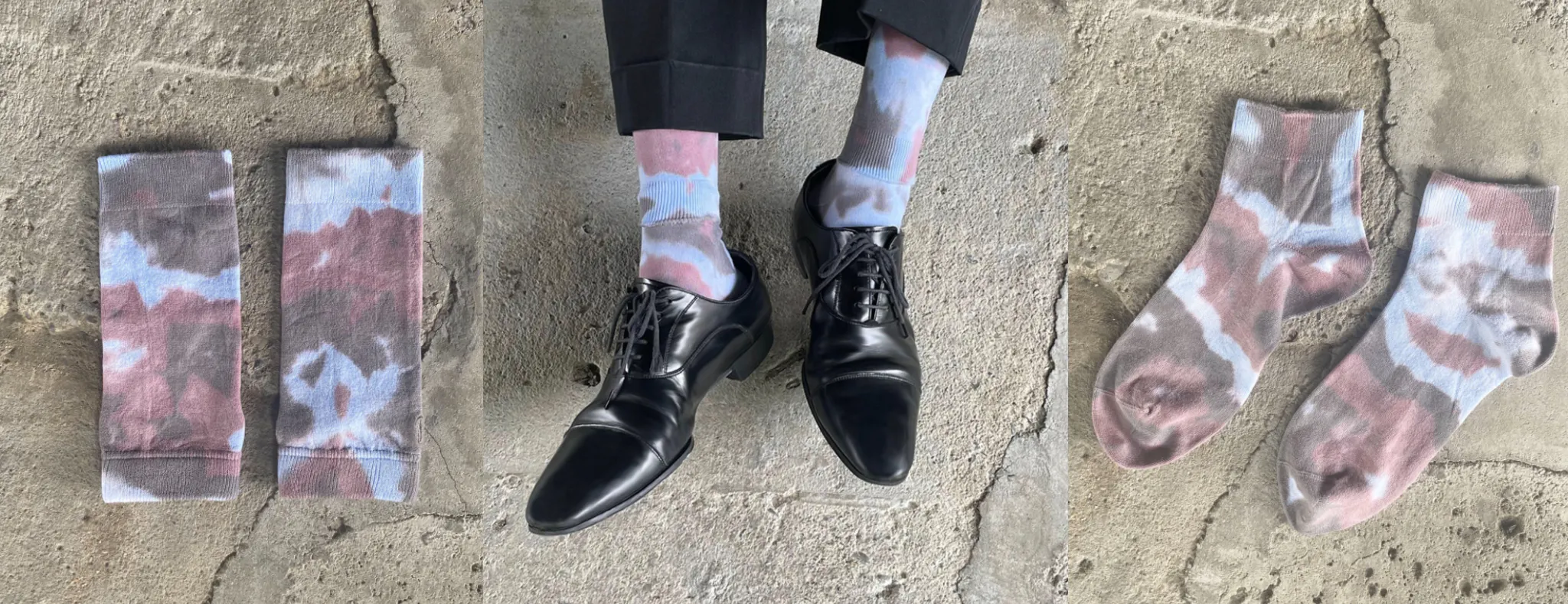 今回靴下に使用した素材は、三山㈱オリジナル素材「摩周湖」(typeAに使用)と「サーティラブ」(typeB~Dに使用)です。