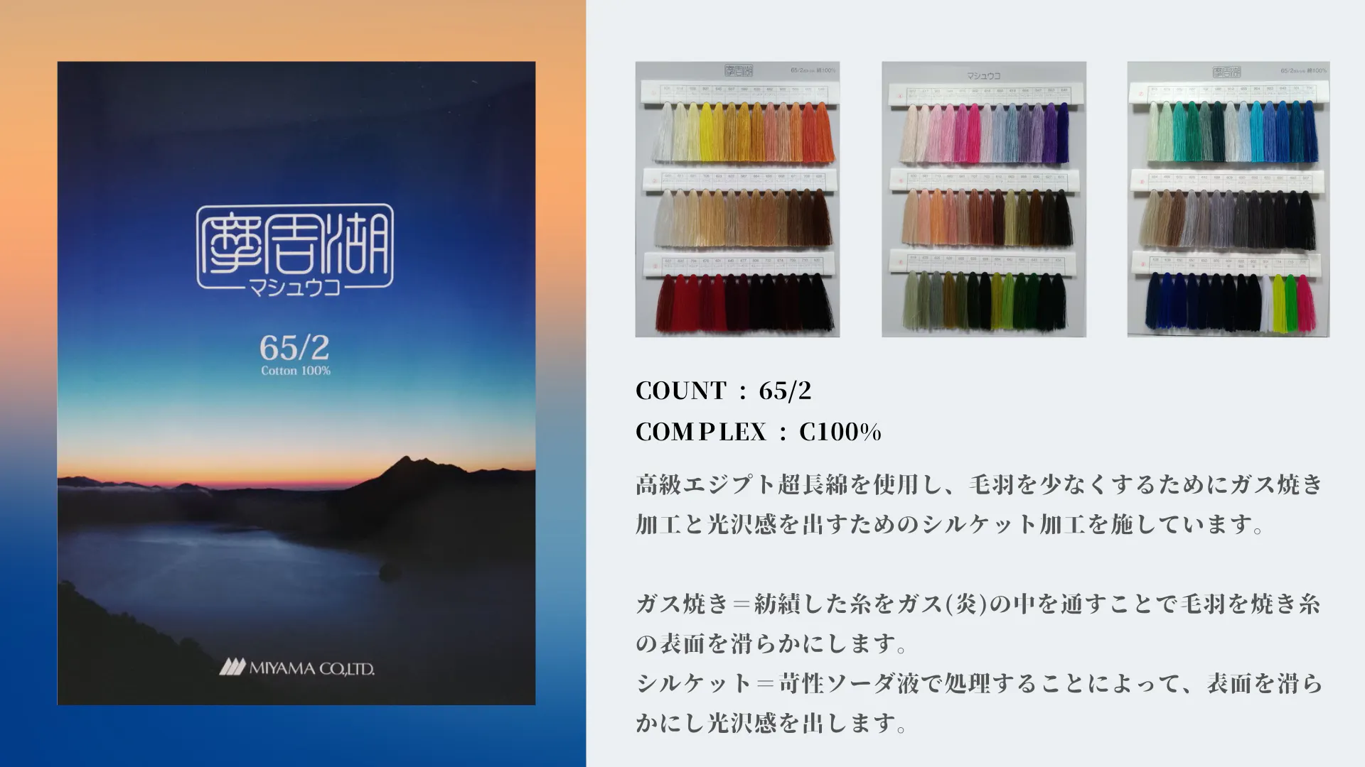 そういった綺麗で美しい表情を連想させるこの糸は「摩周湖」と名付けられました。