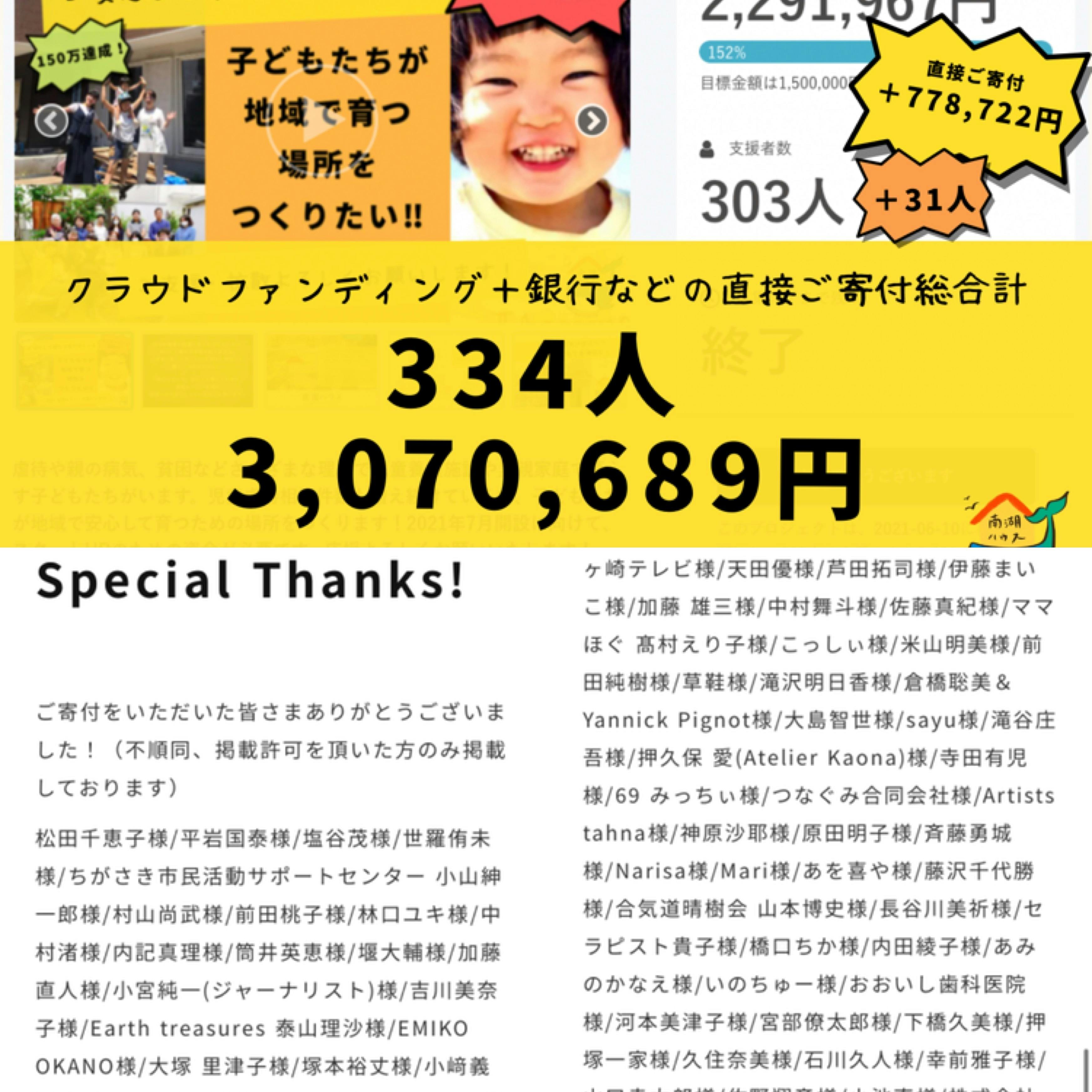 【クラファン 総額&ホームページに支援者様のお名前を掲載いたしました】