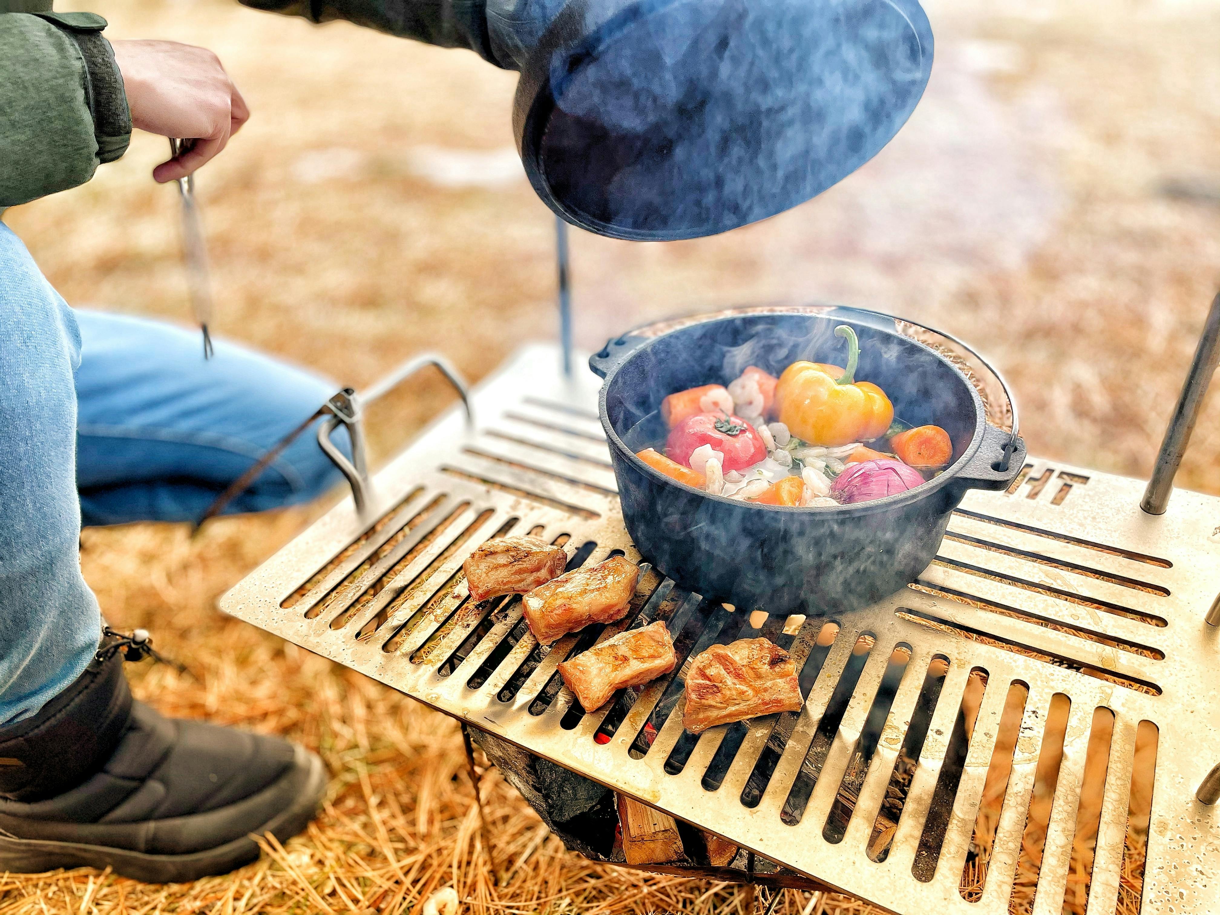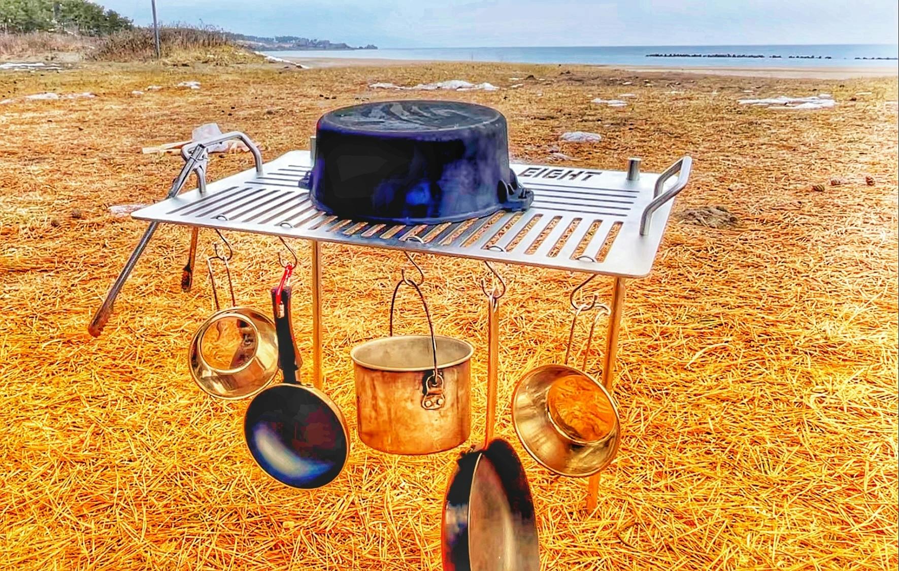 角度をつけているので加熱防止になりつつ、トングなどのキャンプギアを引っ掛けられる形を採用しました!