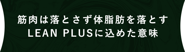 LEAN(リーン)という言葉には、「贅肉がなく引き締まった体型」という意味合いがあります。減量期でも必要な栄養素をバランス良く取り入れることで、極力を筋肉を維持しつつ、無駄な体脂肪だけを減らし、LEANな身体を手に入れられると考えています。