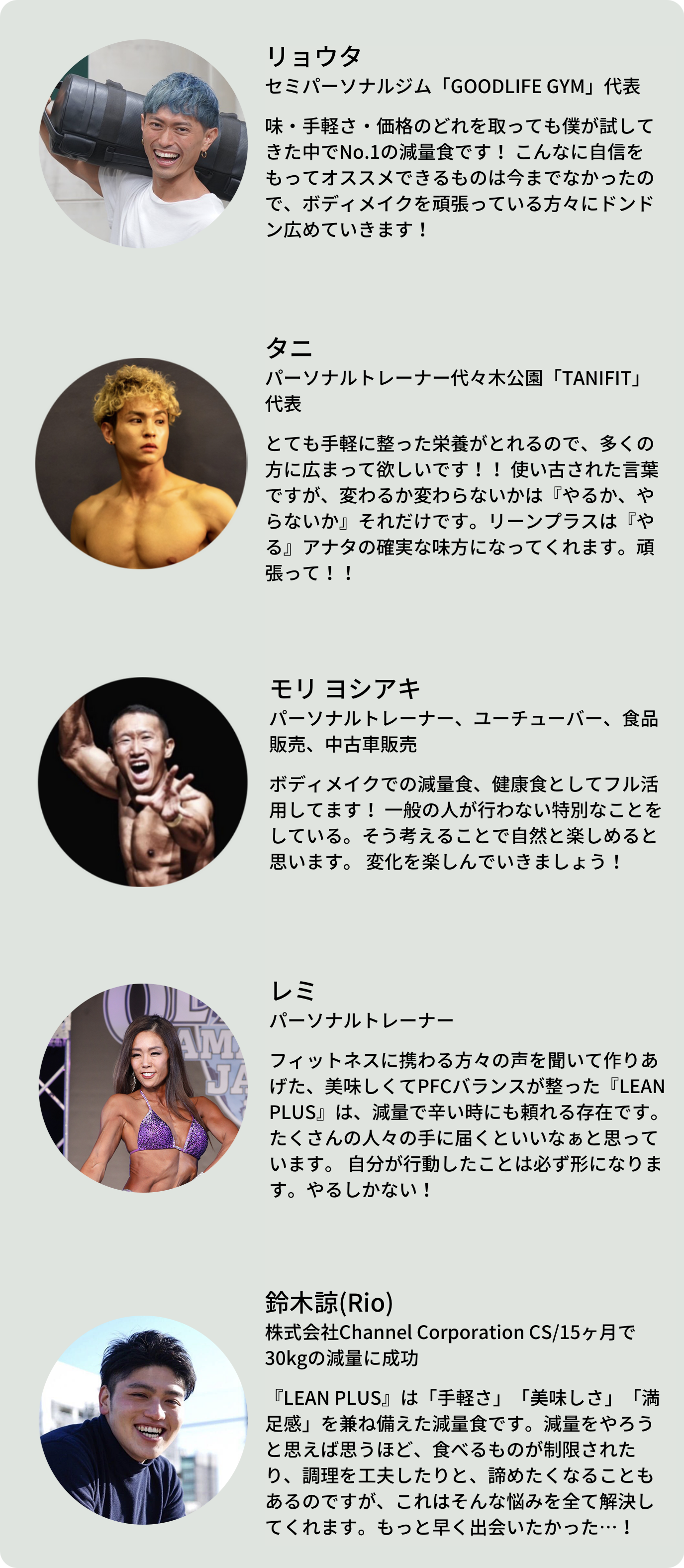 『LEAN PLUS(リーンプラス)』は、上記のような課題を解決し、忙しく働きながらも“健康的に痩せたい・理想の身体になりたい人”の毎日を少しでもラクにするために、シェフ、管理栄養士、現役のトレーニーの方々にご協力いただき、サービスとして立ち上げました!ぜひご支援いただけますと幸いです。