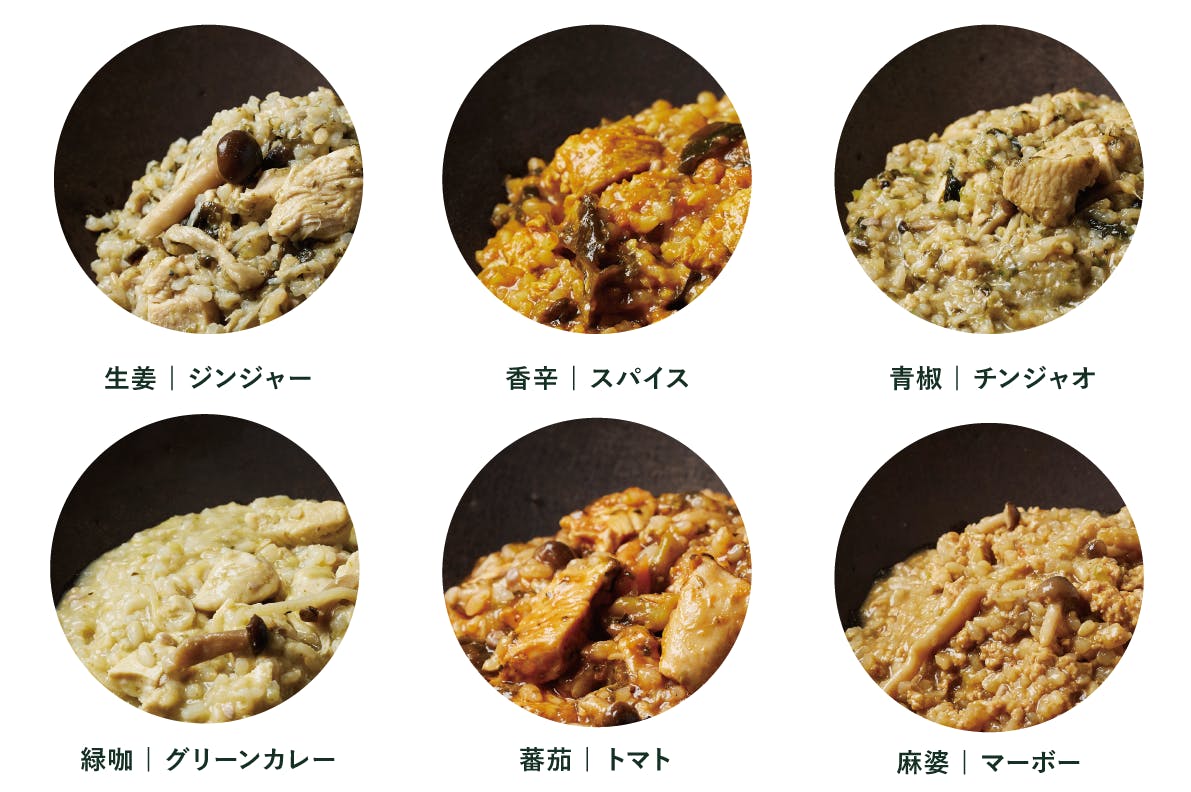 内容は1パック1食分×6種類で構成される、リゾット風の冷凍食品です。