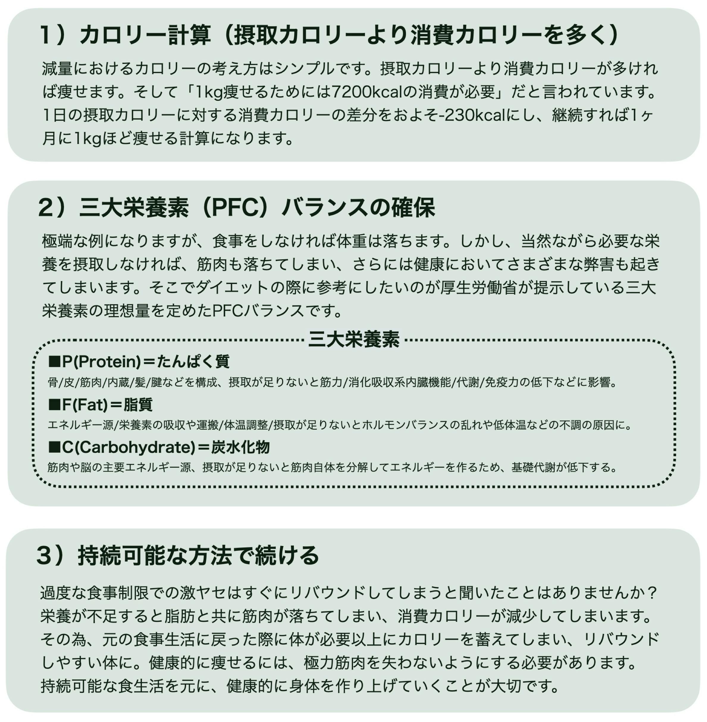 ダイエットに必要な要素は大きく分けて3つあります。