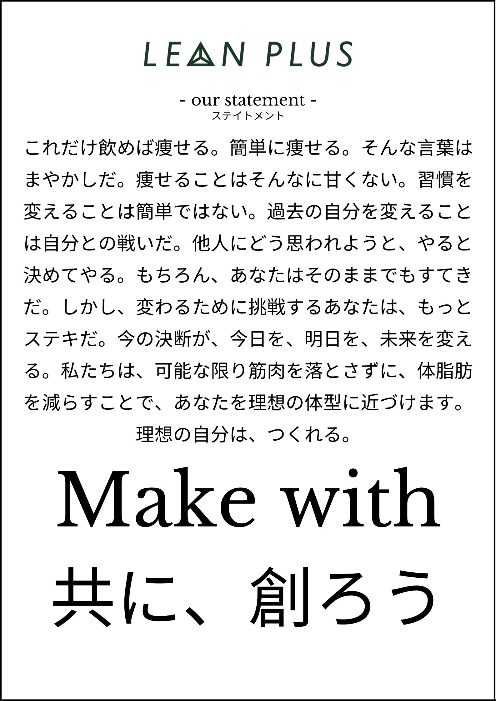そんな想いから『LEAN PLUS(リーンプラス)』と名付けました。