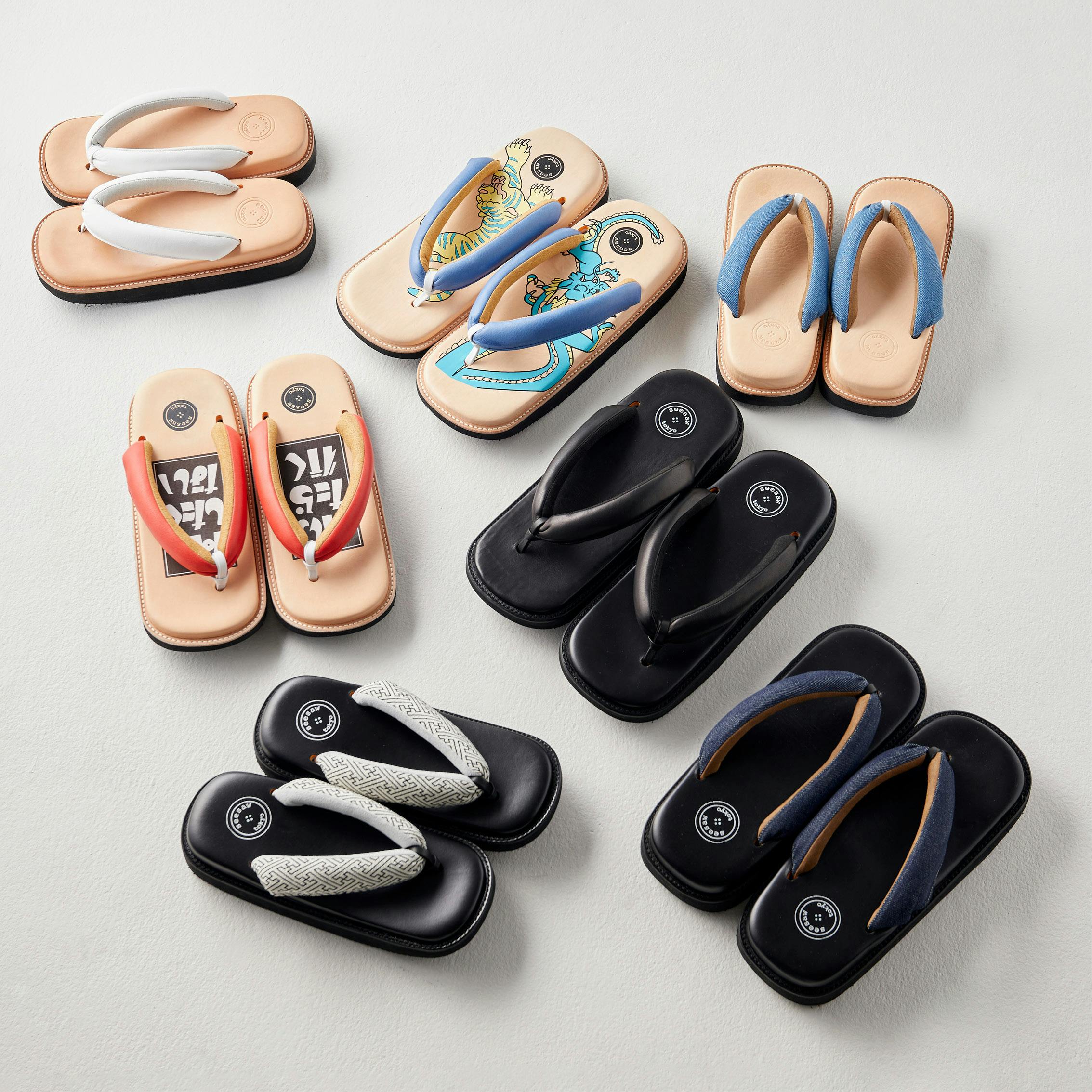 今回は和洋ともに合わせやすいプレーンタイプのサン駄 全5色に加え、クリエイターとのコラボレーションによる2モデルもラインナップいたしました。