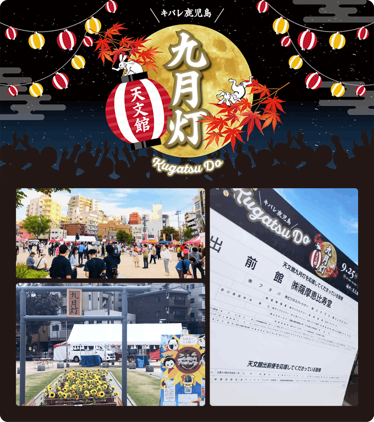 天文館の飲食店40店舗などで、公園などの屋外で開催するイベント「九月灯(くがつどう)」の運営資金と、同じく天文館出前便で実施した子ども達へのお弁当無料配布企画「子ども食堂」の材料費などに活用し、天文館で働くシングルマザーの皆さんを応援いたします。