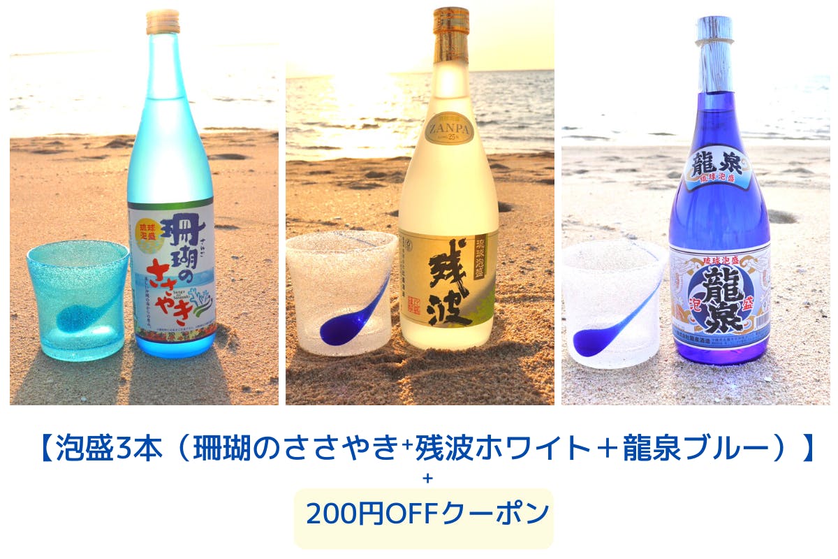 【泡盛3本+200円OFFクーポン】(残波ホワイト+龍泉ブルー+珊瑚のささやき)¥10,000