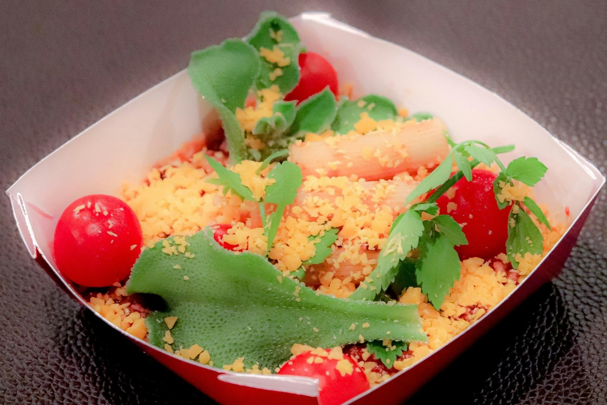 (2)ソフトシェルクラブとヘルシー彩り豆の3色ペンネ