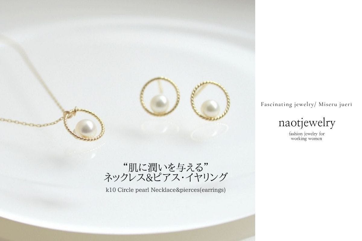 K10 Circle pearl Necklace+pierces(earrings) set