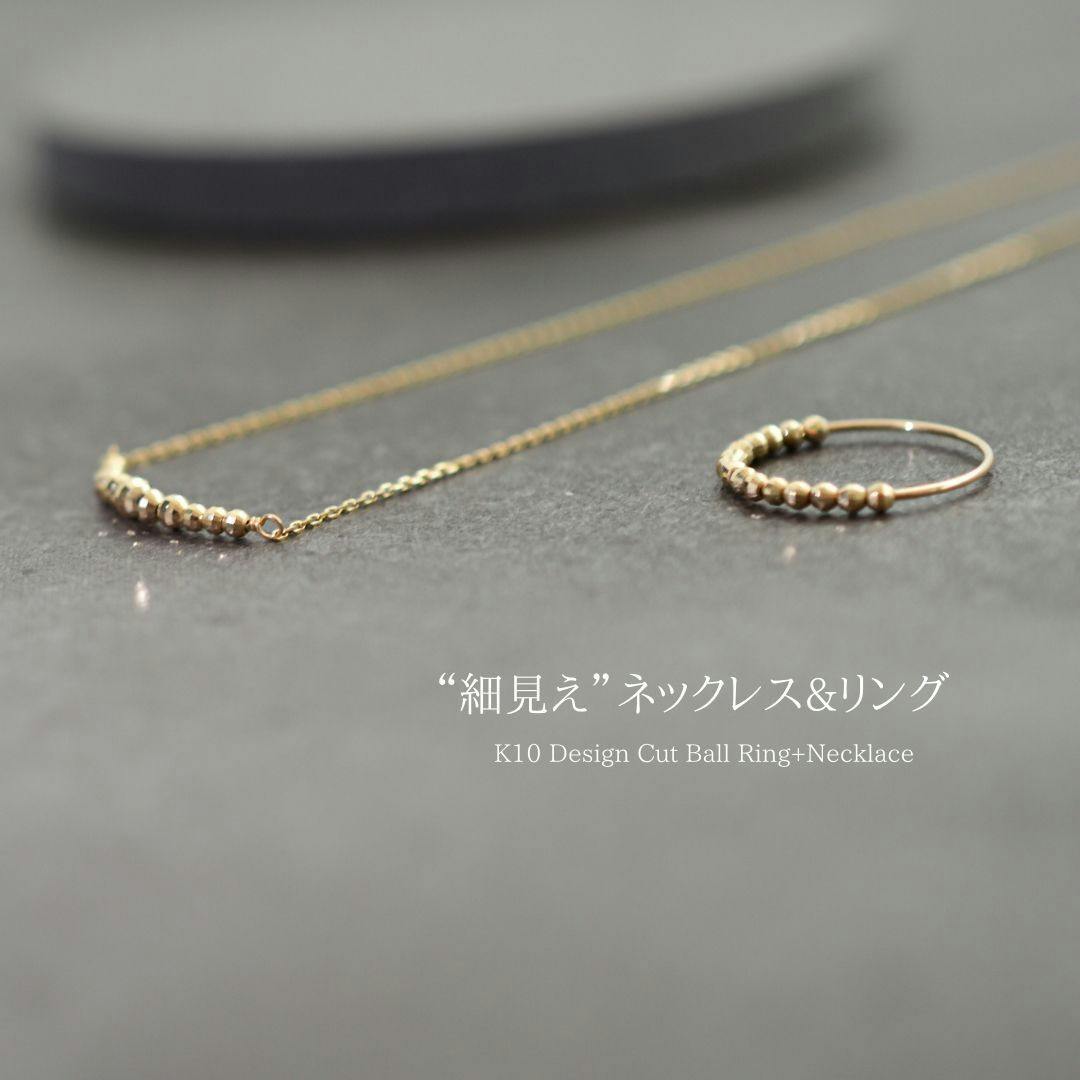 K10 Design Cut Ball Ring&Necklace 2点セット