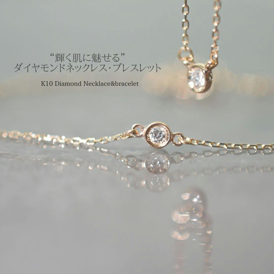 K10 Diamond Necklace 0.05ct&Bracelet 2点セット