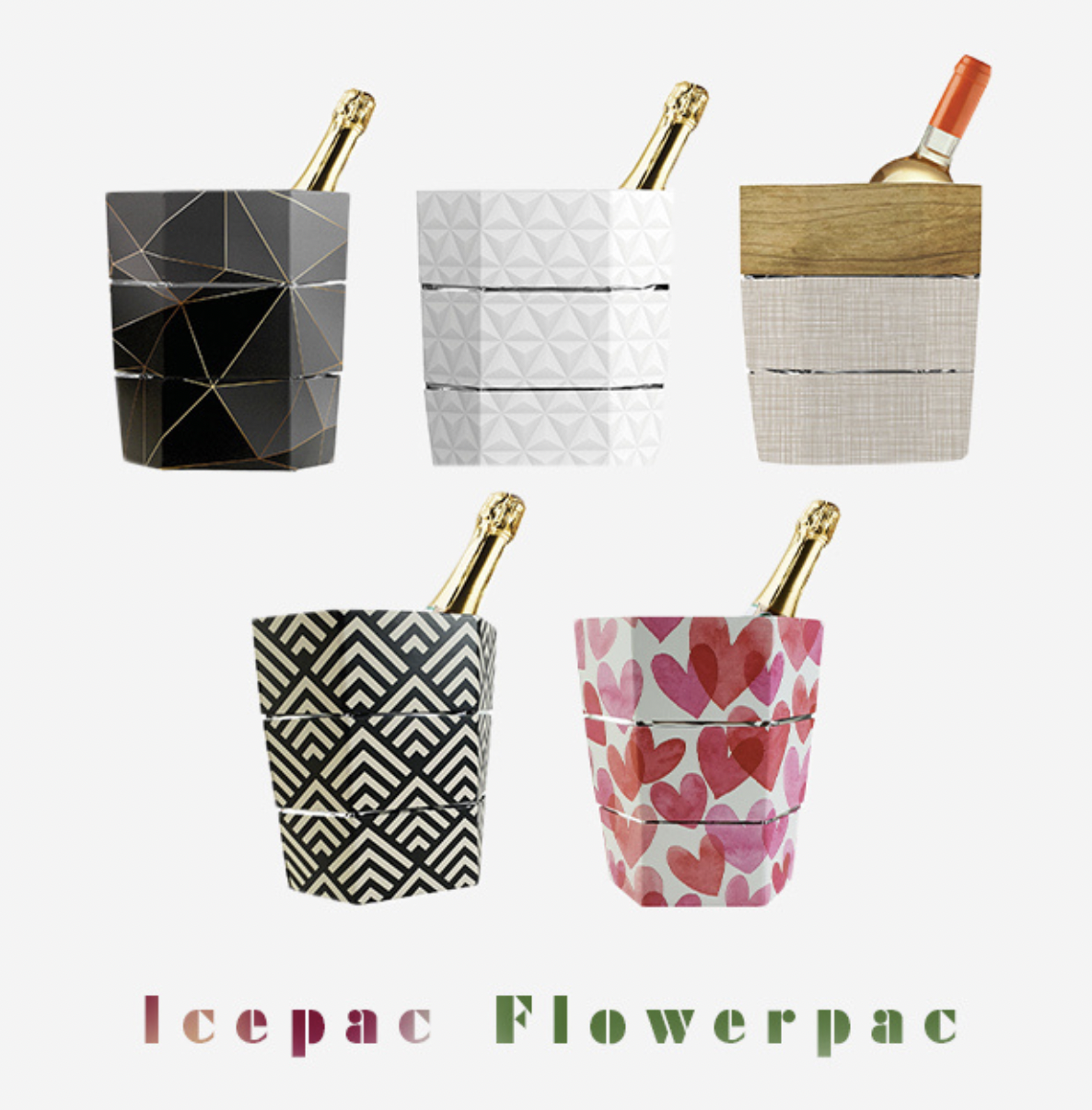 氷の入ったシャンパンクーラーやこれまで私達が使ってきた花瓶は、とても場所をとるものでしたが、Icepac / Flowerpacはこの問題をズバリ解決します。誰でも簡単に組み立てることができて、いつでもすぐ使うことができますよ!