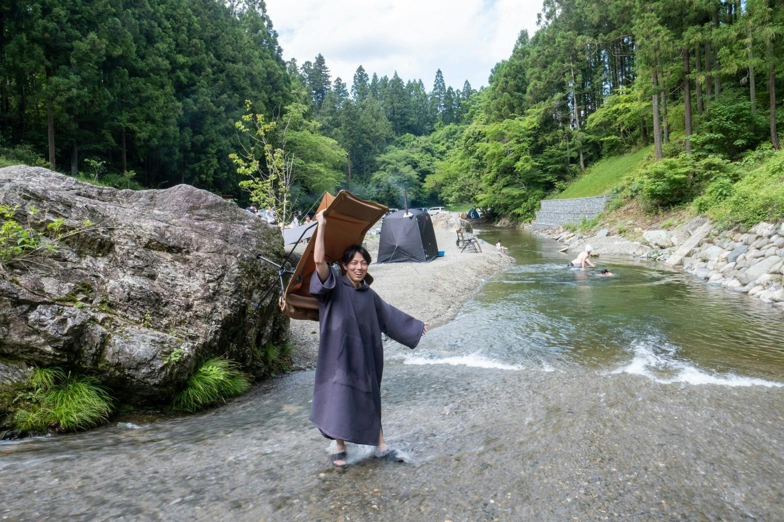自然の中でアウトドアサウナ。セルフロウリュで滝汗。