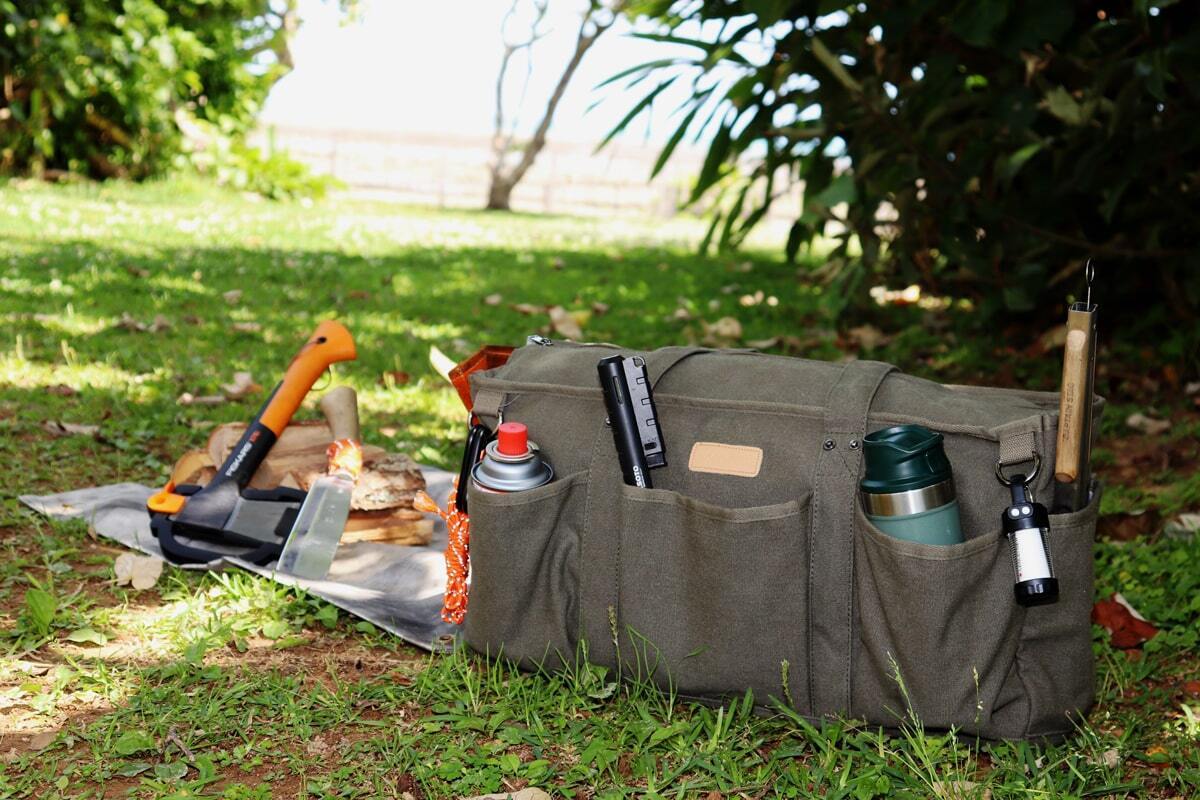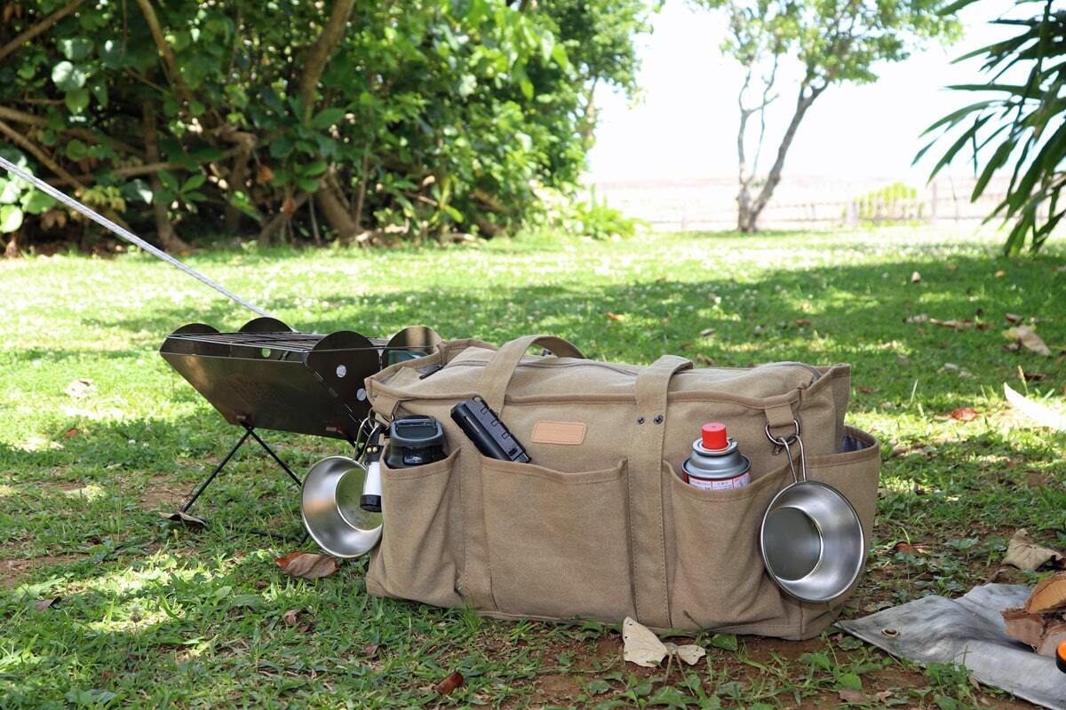 「万能ギアバッグ」は収納力と使いやすさを兼ね備えたキャンパーのためのバッグです。