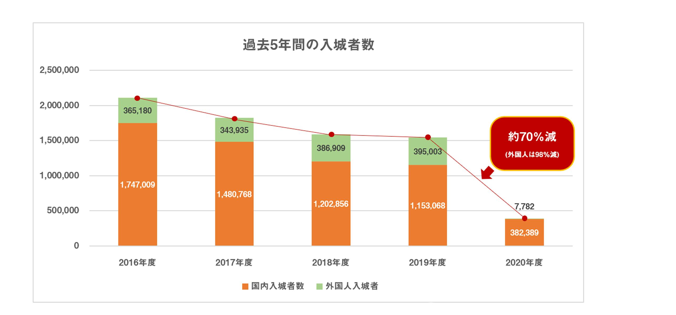 姫路城の来城者数大きく落ち込みました。