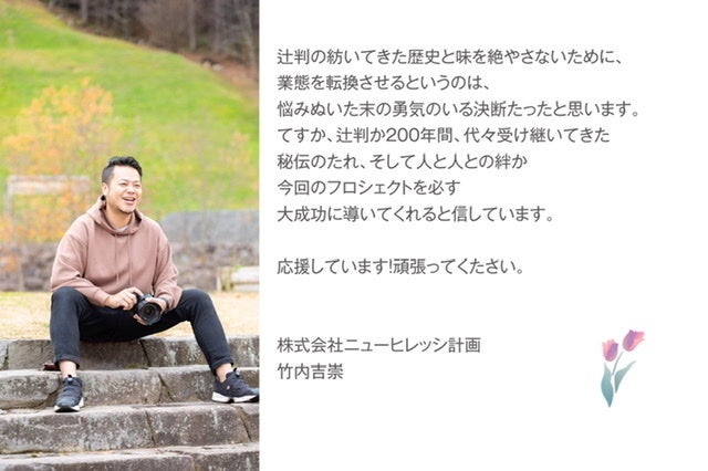 200年の歴史を継承していきたい、その一心で周りの沢山の方々にアイデアやアドバイスを求めたところ、本当に親身になってくださりこの200年の歴史ある辻判ののれんを守ろうと立ち上がって下さりました。