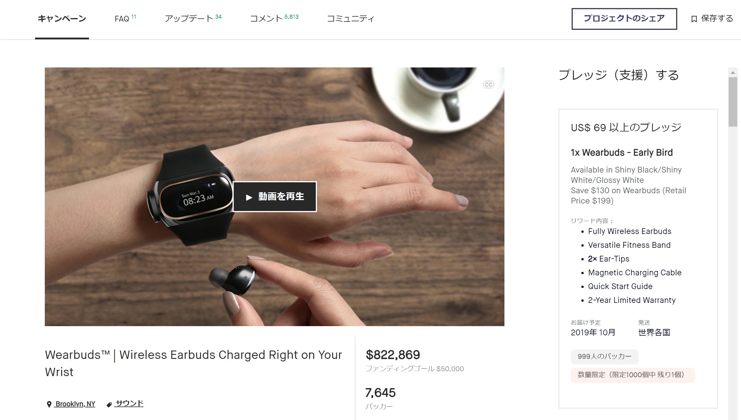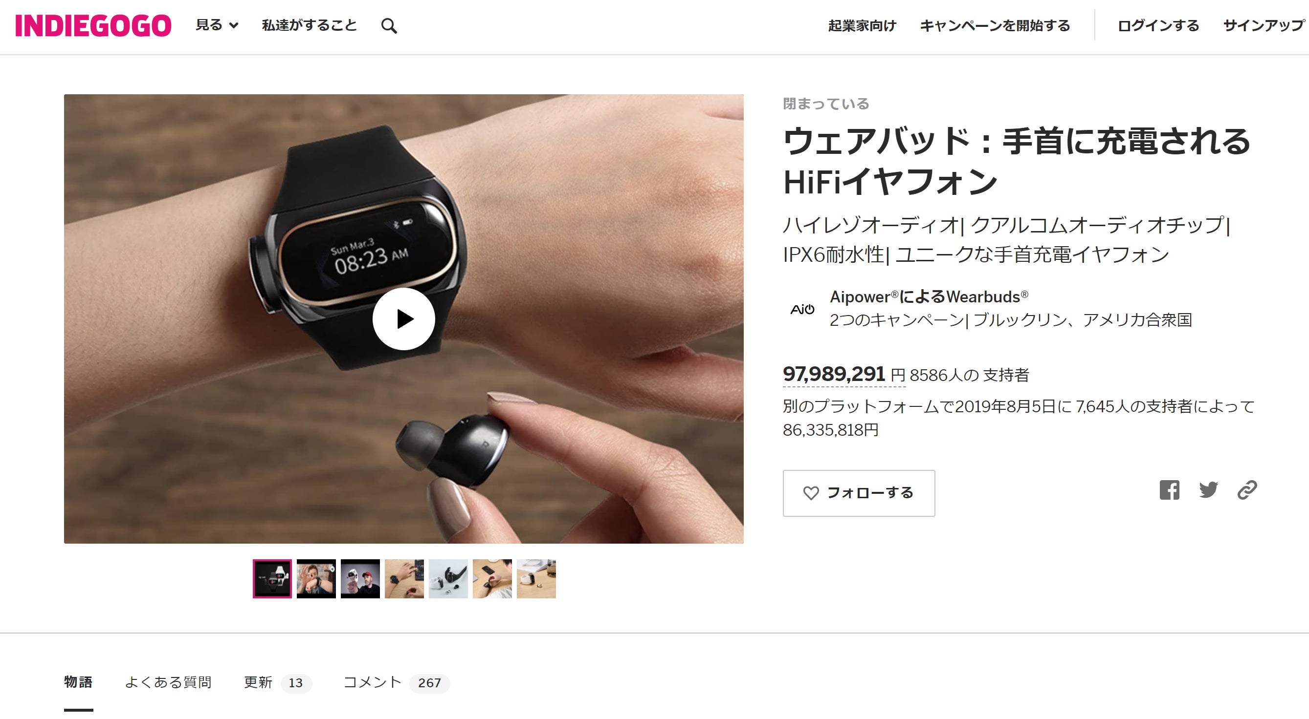 第一世代Wearbudsはアメリカ大手クラウドファンディング2サイトにて、16,231名から総額約2億円の資金調達に成功いたしました!!