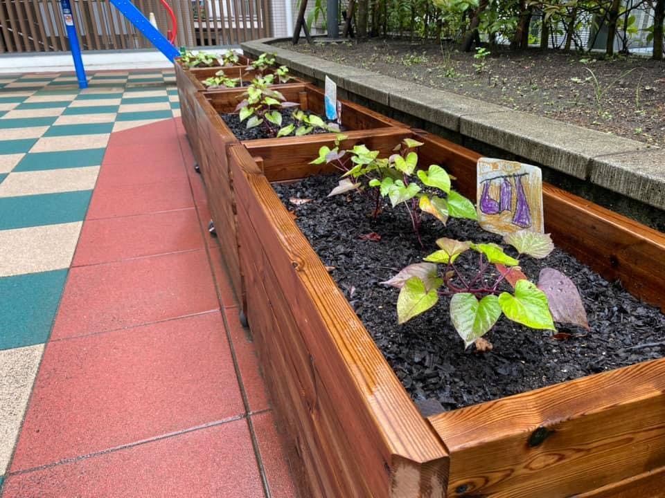 恵比寿保育園にプランターが設置。先日サツマイモを植えました!