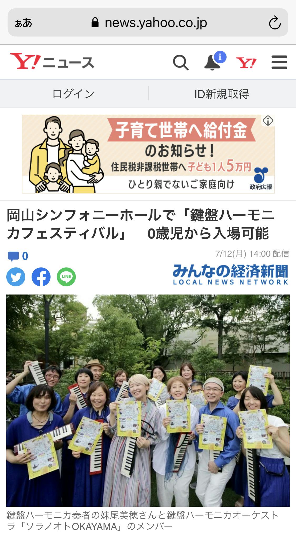 2021/07/22 08:00みなさまご支援いただきありがとうございます。鍵盤ハーモニカフェスディバルを広めていただきありがとうございます!チラシ配布にもご協力いただき、北は北海道から岡山を中心に約6000枚のチラシをお届けしております。これまでに出演した【メディア出演情報】のご報告です。●6月30日 RSKラジオさま 「朝耳ラジオ」●7月12日 岡山経済新聞さまhttps://okayama.keizai.biz/photoflash/4291/●7月12日 Yahooニュースさまhttps://news.yahoo.co.jp/articles/cd3b01585829b4a50d0c9ccef960499139dea801●7月16日 FM岡山さま 「牛嶋俊明ドリームファクトリー」ありがとうございました!その他開催までに■7月30日 RSKラジオさま 15:00頃■8月3日 レディオモモさま 8:00頃その他、新聞、テレビなど情報解禁になりましたらご連絡いたします。引き続きよろしくお願いいたします。 もっと見る