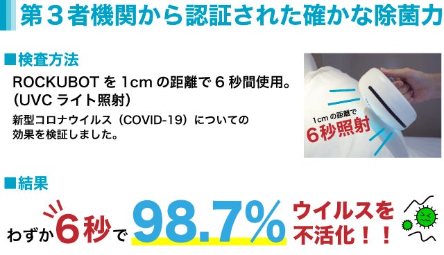 除菌ロボットROCKUBOT(ロックボット)は日本で意匠権登録済み、中国・アメリカ・ヨーロッパ各国で外観特許・発明特許取得済みの製品となります。類似製品にご注意ください。