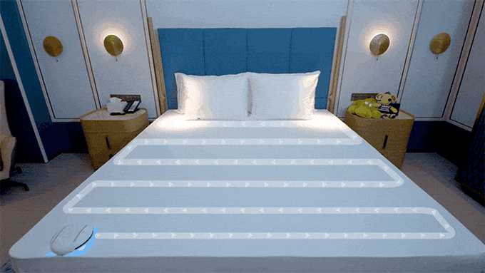 上部の自動センサーで掛け布団の下でも走行可能。マットレスと掛け布団、両方向を同時に除菌。