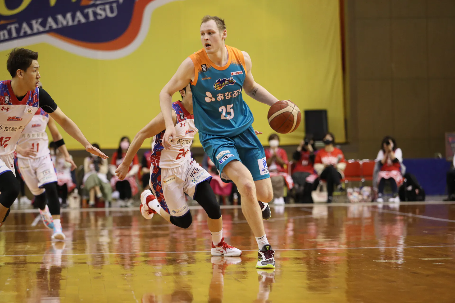 ユニフォームカラーには「ブルー」を採用しました。ブルーは、感染拡大を最前線で食い止める医療従事者の皆さまに対する感謝や敬意を示す色であると同時に、かつてbjリーグで優勝争いを繰り広げた高松ファイブアローズのチームカラーでもあります。