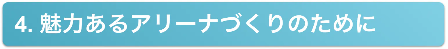 来シーズンの開幕に向け、ファイブアローズのゲームをより多くの方々が、より良い環境で応援できる「魅力あるアリーナづくり」を目指して、ホームアリーナ一階席に新たにスタンド(1000万円〜1300万円)を購入したいと考えています。一階席にスタンドを設置することで、いつも応援していただいているブースターの皆さまに、今まで以上にゲームの臨場感や、選手との一体感をお届けしたいと考えております。