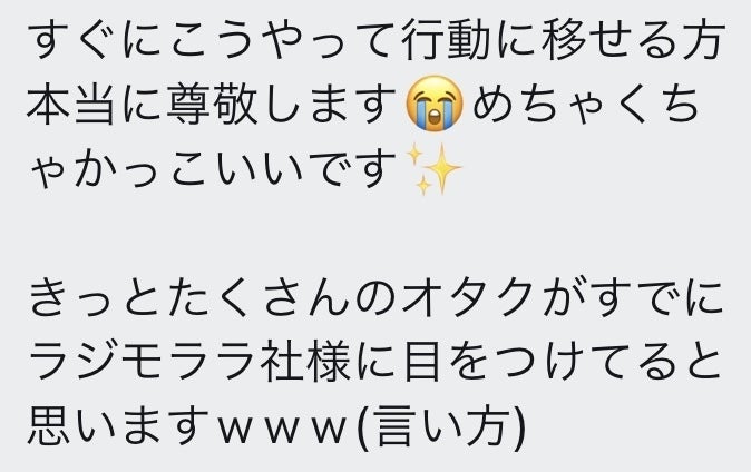 グッズ取引機能を皮切りに、ラジモララでは今後も様々なサービスを展開予定で、コロナにより変化してきた時代に沿った新たなオタ活の場を確立します。