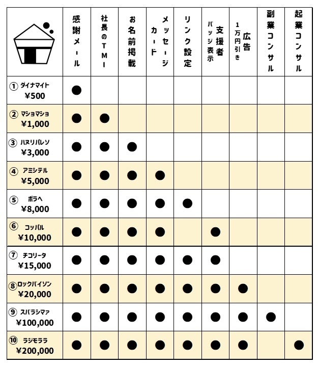 上記支援者様を対象に特別なキャンペーンなども開催していく予定です^^