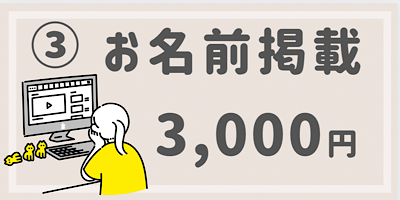 当サービスのご支援者一覧に1年間お名前を掲載いたします。