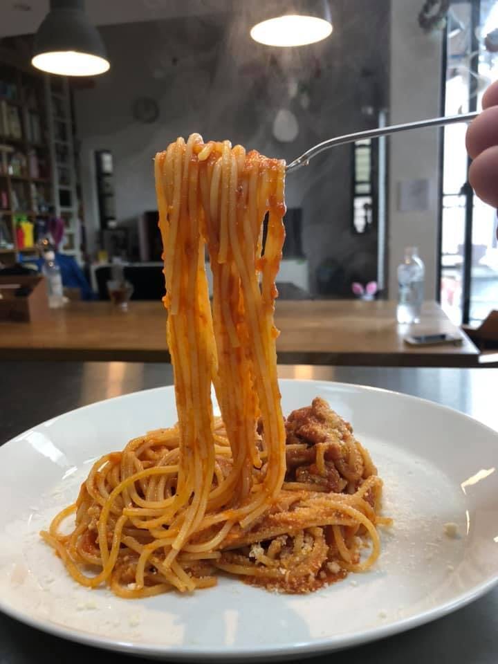 必要であればお湯又は茹で汁を加え、パスタにソースを絡めていく。