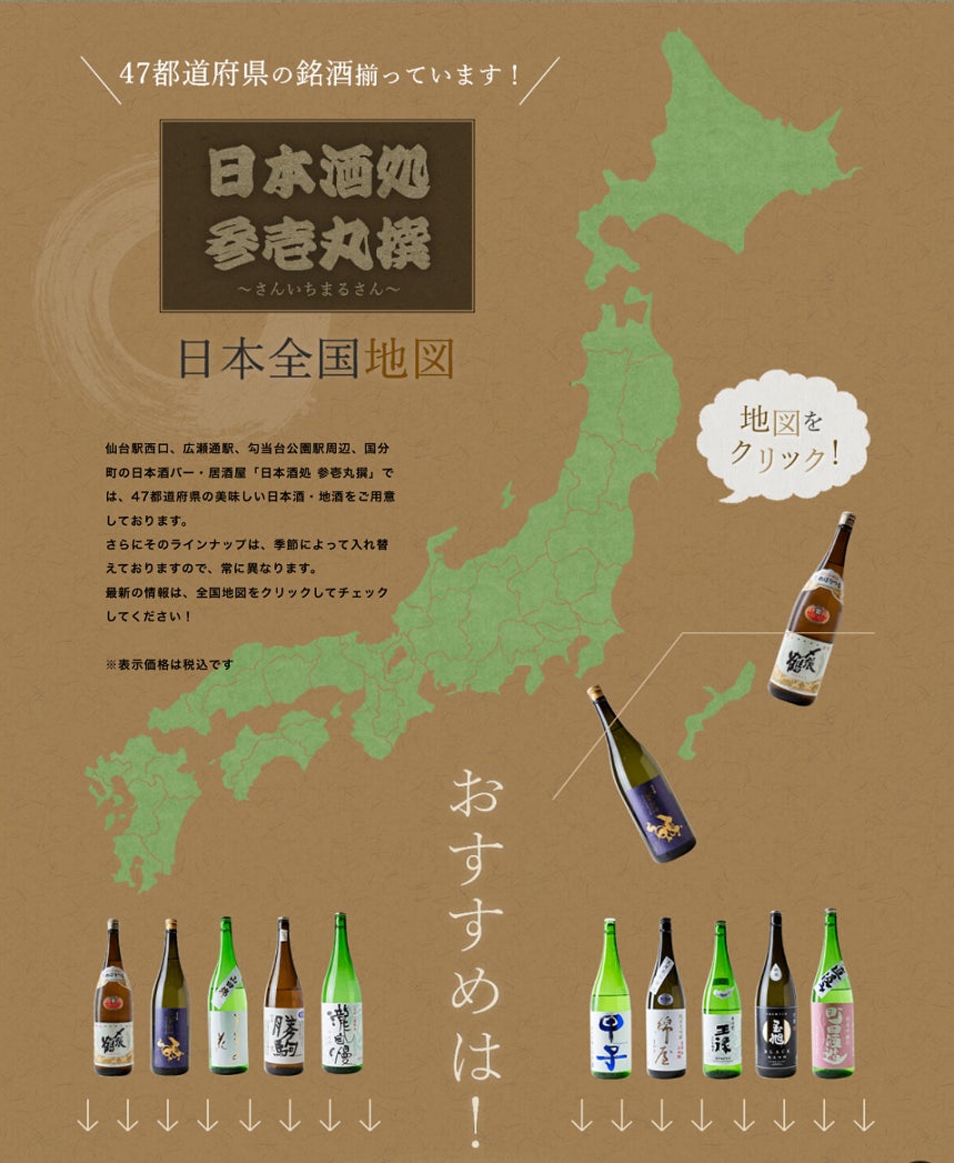 東北は宮城県仙台市の繁華街、国分町で日本酒を中心とした全国銘酒を楽しんでいただく日本酒居酒屋「日本酒処参壱丸撰」を経営しております佐藤宏幸と申します。